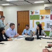 Prefeitos, gestores e representantes técnicos do Vale do Rio Pardo participam de reunião na Secretaria da Reconstrução Gaúcha para tratar da execução das ações do Comitê Pró-Clima, primeiras ações incluídas em nível regional no Plano Rio Grande